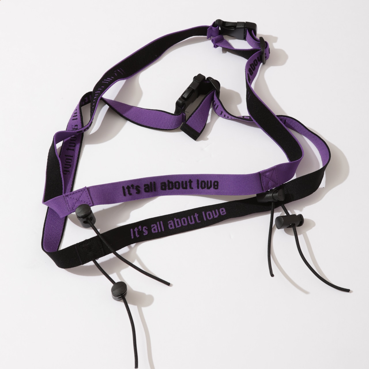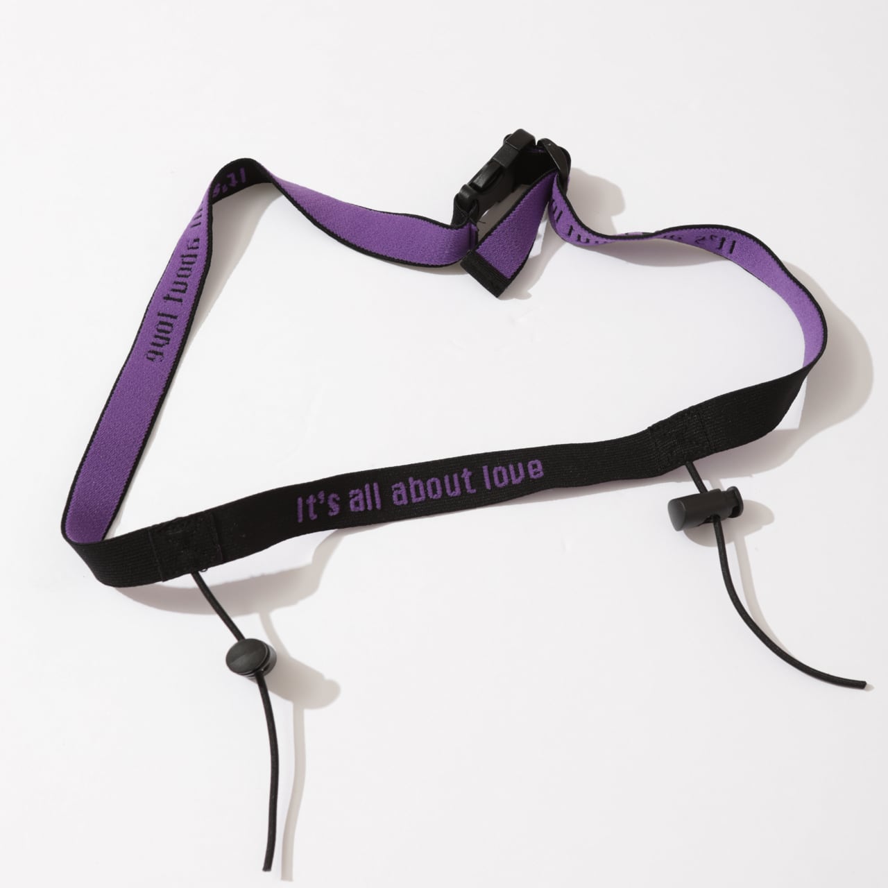 トレイルランニングレースでの使い勝手と、7trailsらしいクリエイティブを両立したゼッケンベルトです。一般的なシルクプリントではなく、コピーとロゴをすべてジャガード織りで編み込んだ仕様で、長時間の使用でも文字が掠れず、質感が長く続きます。