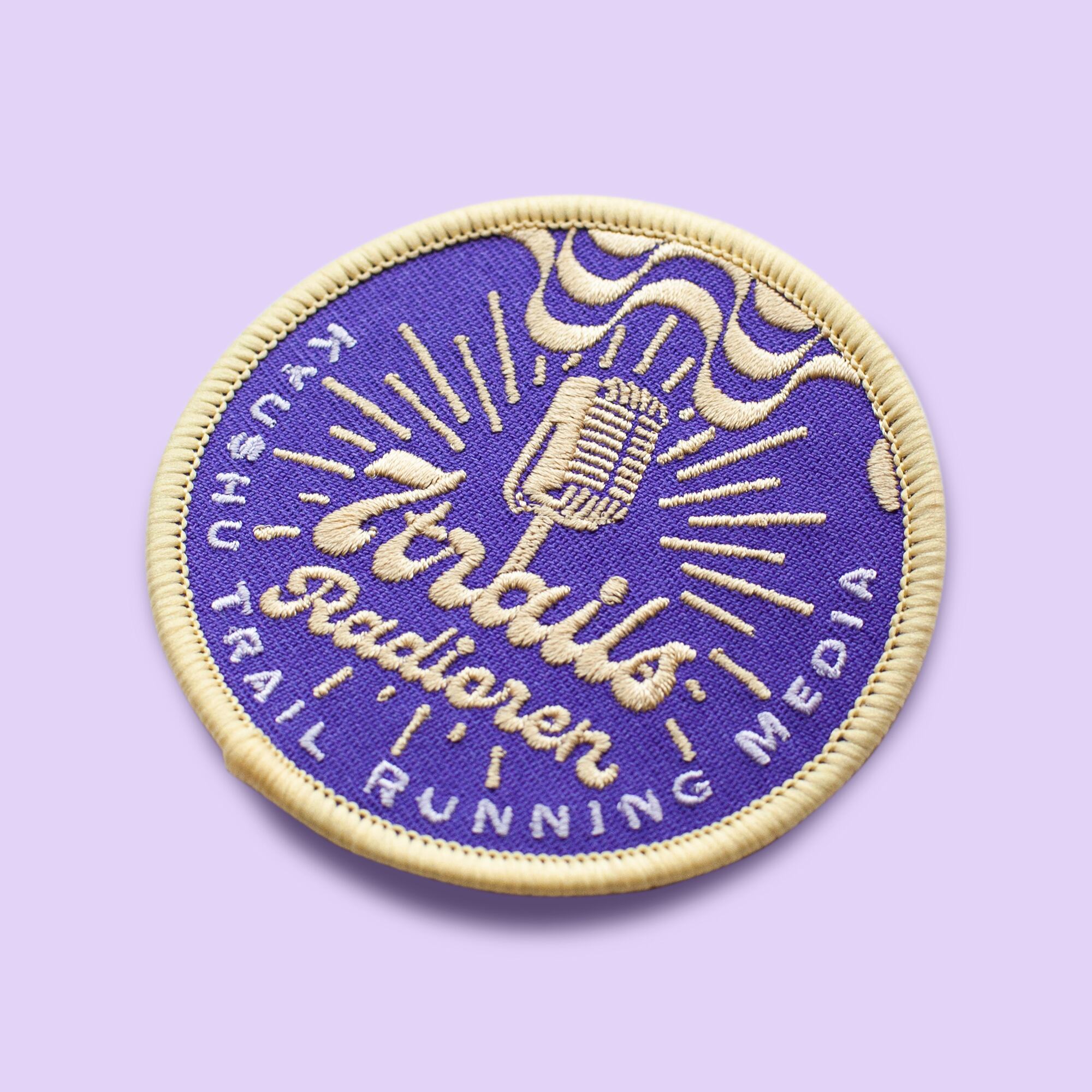 ポッドキャスト「7trailsラジオ練」のロゴをもとにデザインした円形ワッペンです。70mmのサイズに広がる放射状の光や波線の表現が、番組らしい世界観をよりやわらかく、かわいらしい印象に仕上げています。周囲には“KYUSHU TRAIL RUNNING MEDIA”の文字を配し、番組と九州のフィールドを結ぶイメージを込めました。
